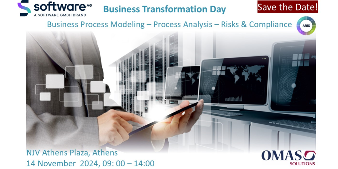 Ανακαλύψτε τις τελευταίες εξελίξεις στο Business Process Analysis με τη χρήση του κορυφαίου συστήματος ARIS Connect της Software AG! Η Software AG, γερμανική πολυεθνική πρωτοπόρος στο λογισμικό επιχειρηματικού μετασχηματισμού, θα σας δείξει πώς μπορείτε να βελτιστοποιήσετε τις επιχειρηματικές σας διαδικασίες, να αυξήσετε την αποδοτικότητα και να προωθήσετε τον ψηφιακό μετασχηματισμό της εταιρείας σας.